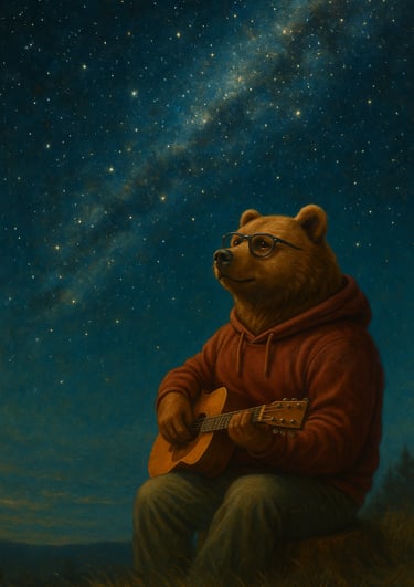 Veeru isn’t your average bear. He once wandered into a tea garden seeking honey and discovered the magic of Assam’s aromas. Wearing his bright red hoodie and cool glasses, he’s a natural connector—chatting up spice growers at dawn, swapping stories with riverboat captains at dusk, and hosting impromptu campfire jams under the stars. One night, he mixed wild peppercorns, local hops, and a dash of ginger—right by the riverbank—and that experiment became our first unforgettable brew. Now, Veeru shares that recipe and his warm, fun spirit with every friend he meets—always curious, always welcoming, and always ready for the next adventure.